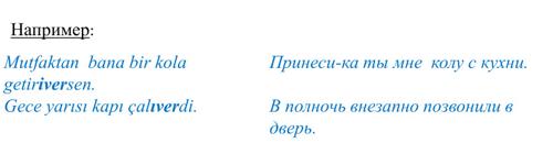 Если к основе глагола добавить аффикс -(y)iver, то действие приобретает дополнительный смысл быстроты и легкости его выполнения. Иногда тот же аффикс придает значение неожиданности или внезапности действия, выраженного таким глаголом.