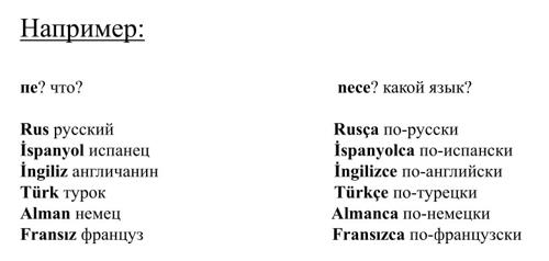 Варианты: -çe, -ça после глухих согласных и -ce, -ca после звонких согласных