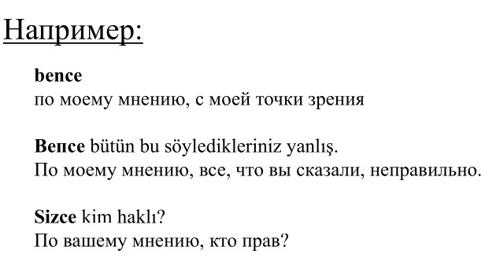 Bence — Bana göre (По моему мнению, с моей точки зрения)