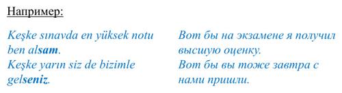 Keşke sınavda en yüksek notu ben alsam — Вот бы на экзамене я получил высшую оценку.