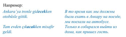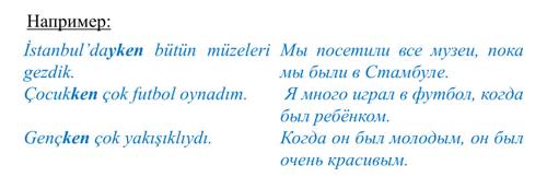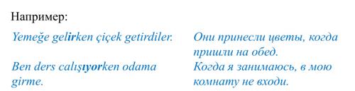 Если этот аффикс применяется с основой глагола, то ему предшествует временной аффикс. Если это аффикс настоящего времени -yor или настоящего-будущего времени -ır, то данная форма будет означать "когда, пока, в то время как".