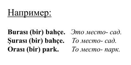В турецком языке слова burası, şurası, orası указывают на определенное место.
