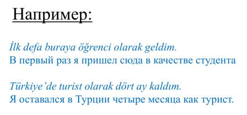 Деепричастие на -(y)erek от вспомогательного глагола olmak в сочетании с именной частью речи означает "в качестве (как)" и служит для образования наречий