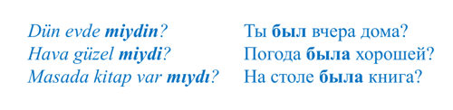Аффикс -(y)dı ставится между вопросительной частицей mı и личным аффиксом