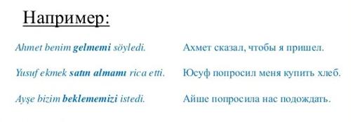 Ahmet benim gelmemi söyledi — Ахмет сказал, чтобы я пришел.