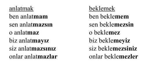 Настоящее-будущее время. Отрицательная форма в турецком языке