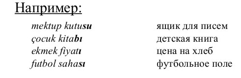 Это определительное сочетание двух имен существительных, в котором первое определение остается неизменным, а второе - определяемое, принимает аффикс принадлежности3-го лица единственного числа. Причем определяемым, как правило, является имя существительное, выражающее родовое понятие, а определением - имя существительное, выражающее видовое понятие, или имя собственное/