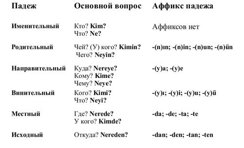 Падежи в турецком языке
