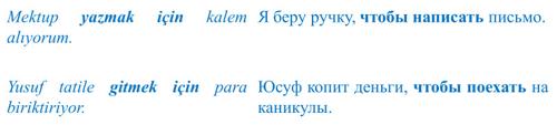 Mektup yazmak için kalem alıyorum — Я беру ручку, чтобы написать письмо.