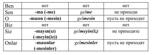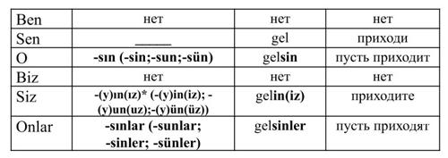 Повелительное наклонение глагола в турецком языке имеет два лица: 2-е и 3-е