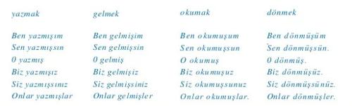 В отличие от прошедшего времени на -dı, прошедшее время на -mış обозначает такие факты прошлого, которые известны говорящему не достоверно, а со слов других лиц или которые являются для него неожиданными.