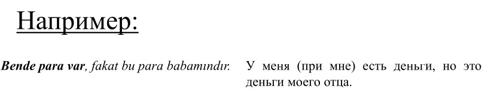 Bende para var, fakat bu para babamındır — У меня (при мне) есть деньги, но это деньги моего отца