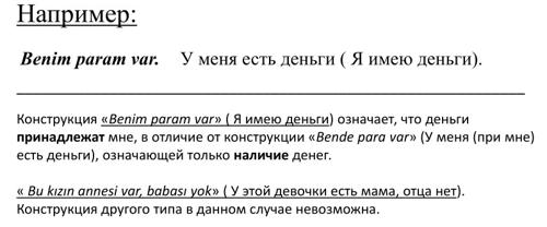 Синтаксические конструкции наличия и обладания в турецком языке