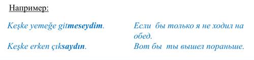 Keşke yemeğe gitmeseydim — Если бы только я не ходил на обед.