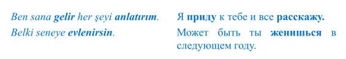 Настоящее-будущее время в турецком языке употребляется для передачи действий двух времен: настоящего и будущего.